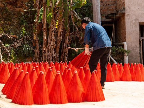 工人制作油纸伞