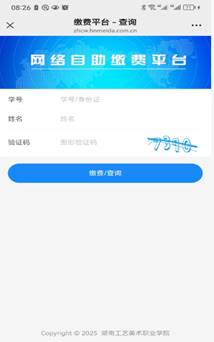 ②选择“学生业务”-“在线缴费”。进入登录页面。输入学生本人身份证件号(尾数X为大写)、姓名、验证码,点击“查询”。未缴清学费杂费/报名考试可以登录查询并缴费,已缴清的同学“待缴信息”将无应收款/实收款金额显示。