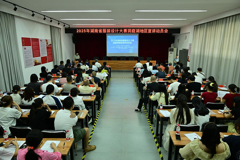 9月16日,由湖南省工业和信息化厅主办的2025年湖南省服装设计大赛洞庭湖地区宣讲动员会在学校举行。湖南省工业和信息化厅党组成员、副厅长毛六平,益阳市委常委、副市长朱春光,学校党委书记陈鸿俊出席,来自益阳、岳阳、常德三市的工业和信息化局负责人,以及洞庭湖地区重点服装企业代表和院校师生代表等200余人参加宣讲会。