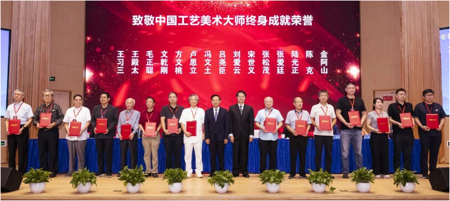 近日,由中国轻工业联合会主办,中国工艺美术大师工作委员会、温州市人民政府等单位联合承办的2025中国工艺美术大师工作会议在温州肯恩大学召开。来自全国的工艺美术大师、院校代表和行业专家齐聚一堂,共话工艺美术发展新篇章。亚太地区手工艺大师、中国工艺美术大师、国家级非物质文化遗产湘绣代表性传承人,太阳集团tcy8722网站湘绣艺术学院工艺总监刘爱云大师被授予“中国工艺美术大师终身成就荣誉”。
