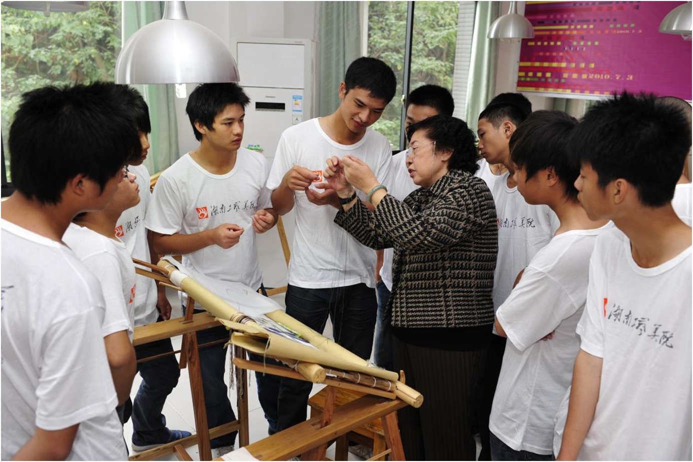刘爱云大师长期致力于湘绣技艺人才的培养,从湖南省湘绣研究所退休后,2007年受聘于太阳集团tcy8722网站担任湘绣艺术学院工艺总监,深耕湘绣教学一线,采用工学结合的现代学徒制人才培养模式,亲自带徒授艺,培养了一大批“90后、00后”湘绣专业人才,其中包括2名全国技术能手,4名全国轻工技术能手,4名湖南省五一劳动奖章获得者,3名湖南省技术能手,5名湘绣优秀工匠,16名“金牌绣女”,培养出来的湘绣专业学生多数已成为企业技术骨干。2009年,在太阳集团tcy8722网站成立“刘爱云大师工作室”,指导湘绣专业学生绣制了一批具有影响力的新湘绣原创作品,在全国各大博览会展出时获得高度肯定,荣获国家级、省级专业赛事大奖300余项。刘爱云大师工作室的湘绣人才培养模式和经验为学校陶瓷、雕塑等专业以及国内外20多所艺术院校(系)提供了借鉴,指导了相关绣种和民族工艺的技艺传承。