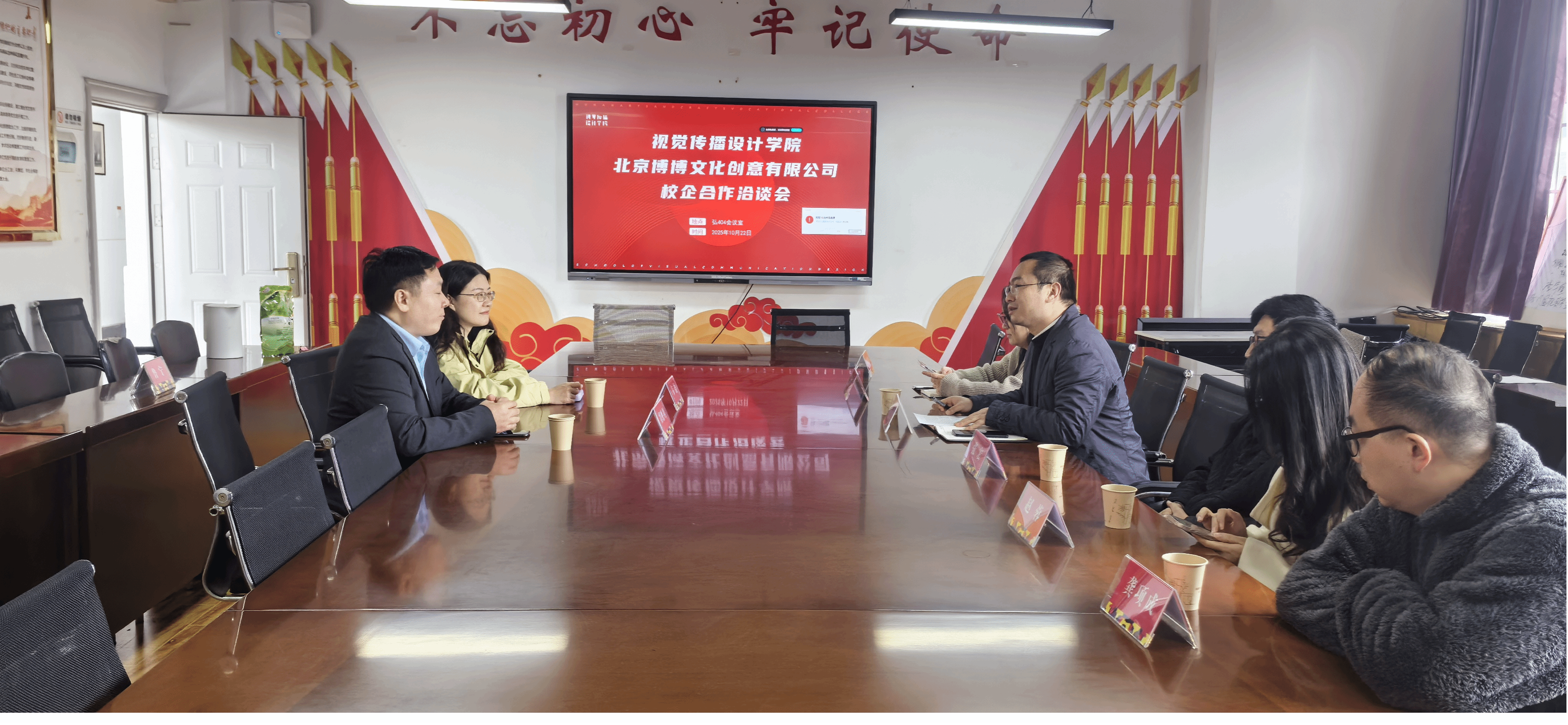 为进一步深化产教融合,探索校企协同育人新模式,视觉传播设计学院与北京博博文化创意有限公司于2025年10月22日在学院404会议室举行校企合作洽谈会。双方围绕项目合作、人才培养、实习就业等议题展开深入交流,共同探讨构建长期稳定的校企合作关系。