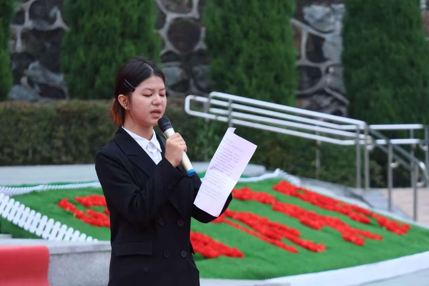 学生代表郑心怡在发言中表示:“作为新时代的青年,我们应当以革命先烈为榜样,勤奋学习、立志成才,努力成长为中国特色社会主义事业的合格建设者和可靠接班人。”