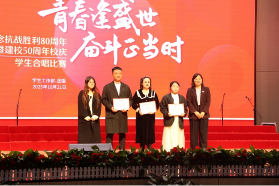 2025年10月21日晚,在纪念中国人民抗日战争胜利80周年与我校建校50周年的重要历史时刻,“青春逢盛世、奋斗正当时”学生合唱比赛于学校大礼堂举行。师生齐聚一堂,以青春之声回望峥嵘岁月,用激昂旋律致敬伟大时代,共同奏响了一曲赓续红色血脉、激扬报国壮志的青春交响。
