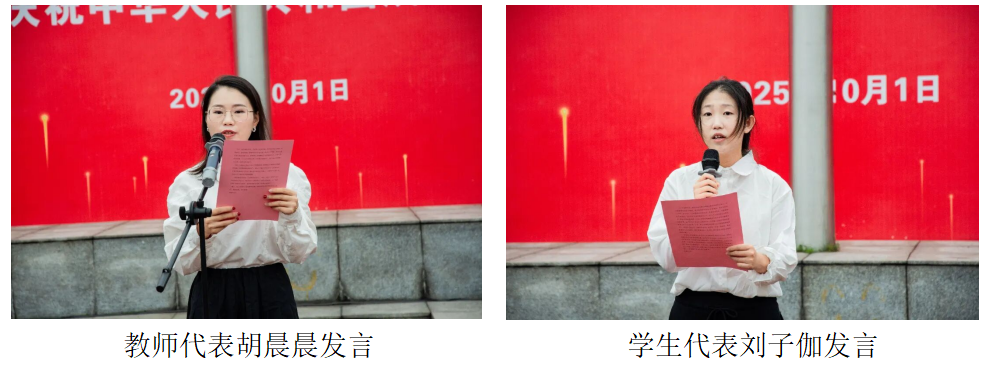 仪式在深情的文艺展演中达到高潮。全体师生共同欣赏了配乐朗诵《以青春之笔,绘盛世华章》,并齐声高唱《我爱你中国》,用嘹亮的歌声表达对伟大祖国的深切热爱和美好祝福。